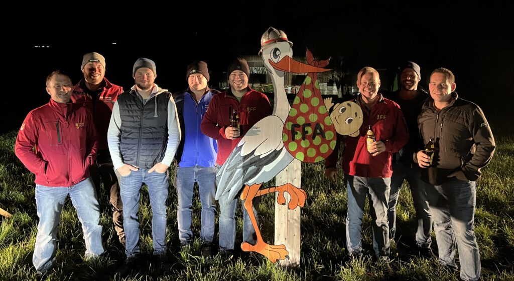 Unser Feuerwehrstorch ist schon wieder im Einsatz! Wir gratulieren Julia und Martin zu ihrem kleinen Josef.